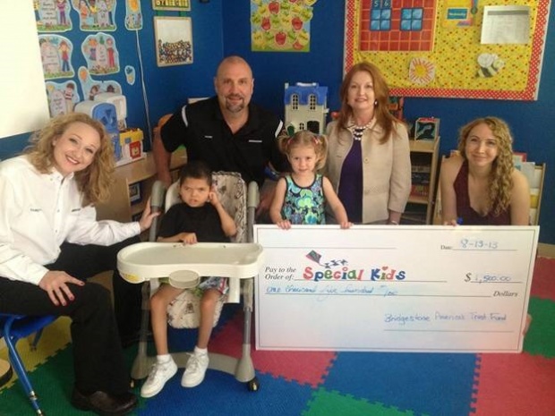 Representatives from Bridgestone Americas Trust Fund stopped by Special Kids Tuesday to award $1,500 to the local nonprofit as an underwriting sponsor of the Special Kids Annual Friendraiser Banquet: 15 Year Anniversary Celebration. For more information on the event set for Thursday, September 5, visit http://www.specialkidstn.com/friendraiser-banquet.