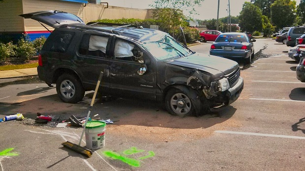 A Ford Explorer wrecked and overturned on NW Broad Street in front of Chuy’s Restaurant. Reports indicate the accident occurred around 2:15, Wednesday afternoon. In fact, the SUV actually overturned in the back of the Chuy's parking lot. Preliminary reports indicate the accident may be related to a hit and run collision that occurred minutes before the SUV overturned at Chuy’s.