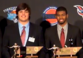 Mike Keith, play-by-play voice of the Titans, with the announcement of Oakland's Jack Jones as the Class Triple-A Lineman of the Year winner. The Patriot's 6-5, 275 pound offensive tackle / defensive end was last year's district lineman of the year and has been invited to this year's Army All-American Combine Game and the Under Armor All-American Combine Game. The two-year starter for Oakland now adds Mr. Football for 2013 to his list of achievements.