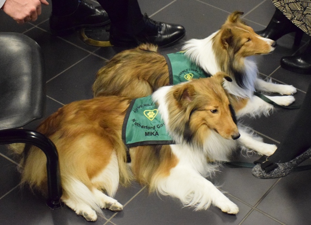 Another popular attraction were the therapy dogs. Judge Davenport indicated that often children are nervous when they have to testify in court, and the cuddly therapy dogs relax them . . .