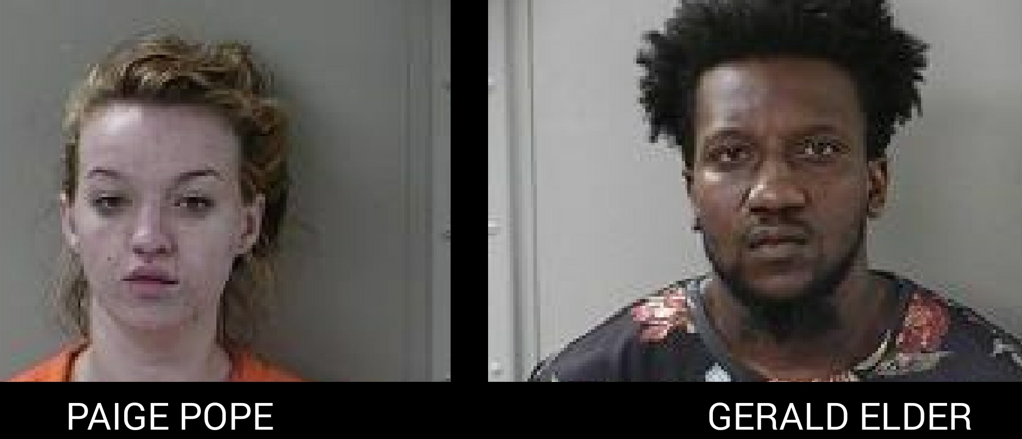Arrested on similar charges were 26-year old Gerald Tyrone Elder (nickname Ty) and 23-year old Paige Pope (nickname Trap Queen, according to arrest report). The duo were in a car together when they were stopped by police. They were both charged with "Especially Aggravated Kidnapping, Aggravated Robbery, Aggravated Assault and Extortion."