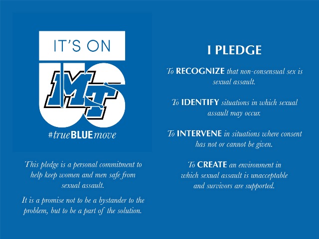 In addition, students will be able to make public statements by writing what they will commit to do to prevent sexual misconduct at MTSU. The slips of paper will be displayed on a board for public viewing.