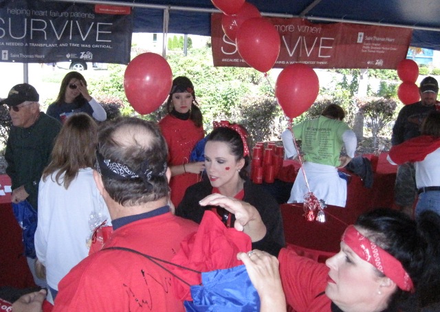 It's a perfect day for a HEARTWALK...sunny with temps in the 60s brought large numbers of participants to the Middle Tennessee Medical Center parking lot where different groups had booths with heart healthy information. Next year's Chair Joey Peay, who is CEO of the Murfreesboro Medical Clinic, served as emcee for the program just before the walk.