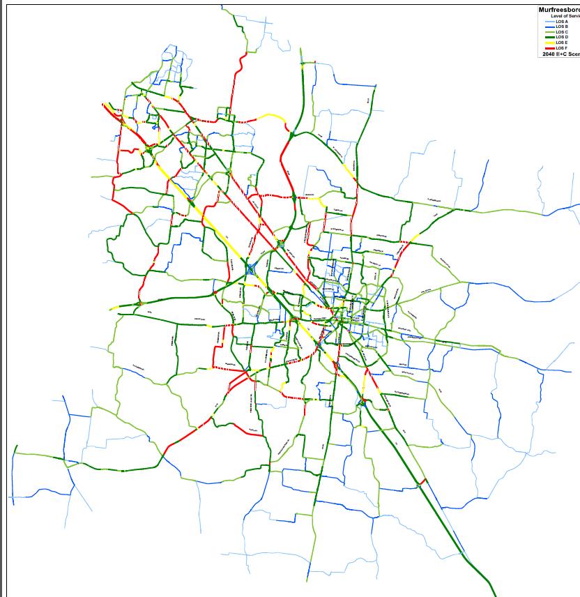 Consultant Neel-Schaffer, Inc. prepared traffic models, analyzed population growth and traffic demand, and incorporated future land use in preparing the 2040 Major Transportation Plan which will be used to complete Chapter 3: Mobility of the Murfreesboro 2035 Comprehensive Plan. The 2040 Major Transportation Plan outlines existing deficiencies and projects future transportation network needs based on a regional modeling process and computer-based projections without cost constraints. Forecasting future capital needs, detailed facility planning, and public and private decision-making are future steps in the stages of transportation improvement.