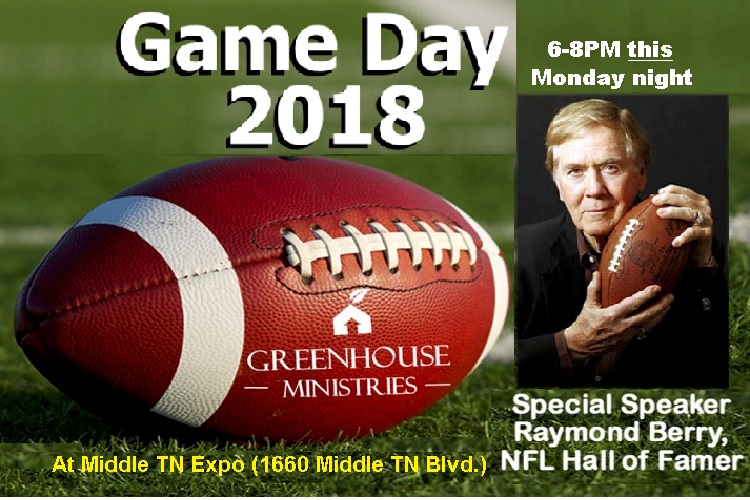 Just a reminder, Greenhouse Ministries 2018 GAME DAY is this coming Monday evening from 6:00 to 8:00PM at Middle Tennessee Expo, 1660 Middle Tennessee Boulevard.