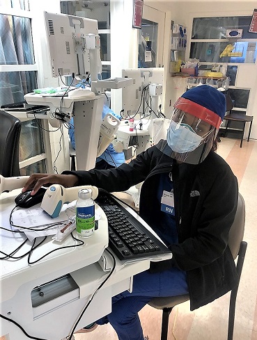 "Some days we are short on gowns," Knight said. "So we leave the same gown on to protect ourselves. That has happened only a few times. We also use the same eye shield. We wipe it off with (antiseptic) wipes and put it in a brown paper bag to use for our next shift along with our N95 mask."