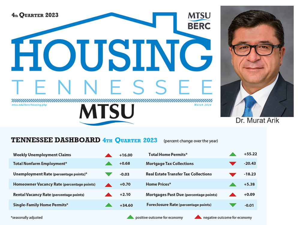 With strong employment numbers, the MTSU Business and Economic Research Center’s statewide report for the fourth quarter of 2023 “is navigating a phase characterized by various factors leaning toward a more positive trajectory” overall, noted report author Murat Arik, director of the BERC at MTSU.
