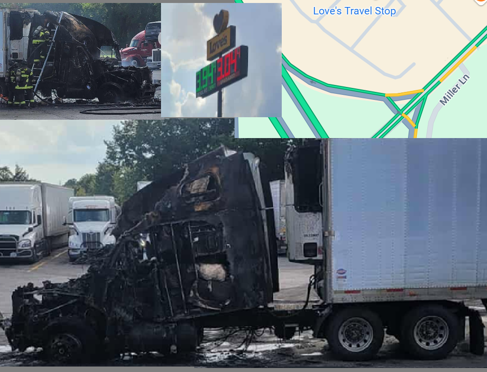 Christiana, TN - An 18-wheeler caught fire around 2:45PM Sunday (7/20/2025) afternoon at Love's Truck Stop off Epps Mill Road near I-24. The driver was backing into a parking space when the engine stopped and flames erupted from the truck’s hood and dashboard. He escaped without injury.