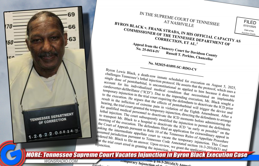 MORE INFORMATION — The Tennessee Supreme Court has vacated a temporary injunction that would have required state officials to deactivate a death-row inmate’s implantable cardioverter-defibrillator (ICD) prior to his execution. Byron Lewis Black, who is scheduled to be executed on August 5, 2025, had challenged Tennessee’s single-drug lethal injection protocol, arguing that the use of pentobarbital would trigger his ICD and cause extreme pain in violation of the Eighth Amendment.