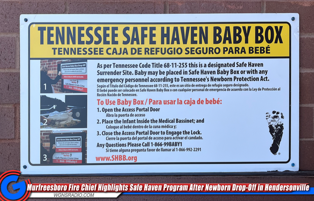 In Rutherford County, the Murfreesboro Fire Rescue Department also joined the Safe Haven initiative, opening its first Baby Box in October 2024 outside Fire Station #4 on Medical Center Parkway. Fire Chief Mark McCluskey told WGNS more about how the system works…