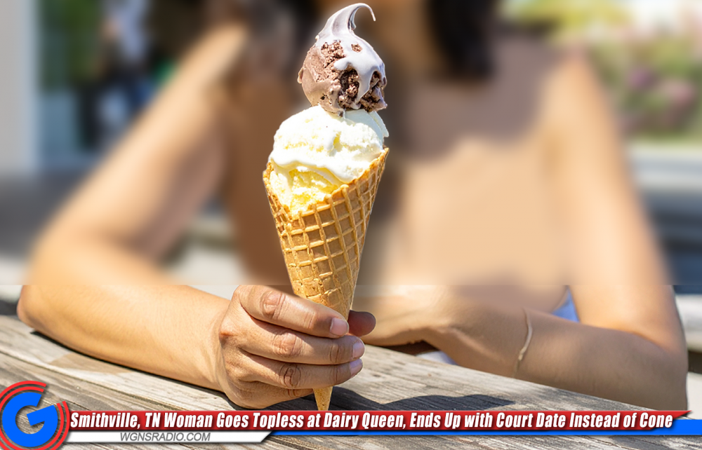 According to a report filed by Smithville Police, a woman in her early thirties may have thought sunshine and soft-serve could make for the perfect combination, though she apparently felt clothing was optional. Witnesses reported that the female was seated at one of the outdoor tables, topless, soaking up the rays like it was her own private tanning salon.