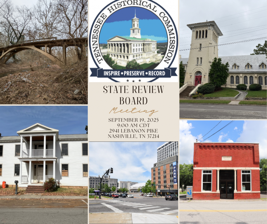 NASHVILLE, Tenn. – The Tennessee Historical Commission has announced that the State Review Board will meet on Friday, September 19, 2025, to review proposed nominations to the National Register of Historic Places. The meeting begins at 9 a.m. (CDT) at the Commission’s office, located at 2941 Lebanon Pike in Nashville, and will also be available virtually for the public to attend.