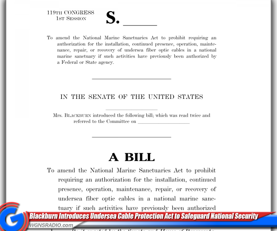 NASHVILLE, Tenn. – U.S. Senator Marsha Blackburn (R-Tenn.) has introduced the Undersea Cable Protection Act of 2025, legislation aimed at strengthening national security and global connectivity by safeguarding the United States’ submarine cable infrastructure.