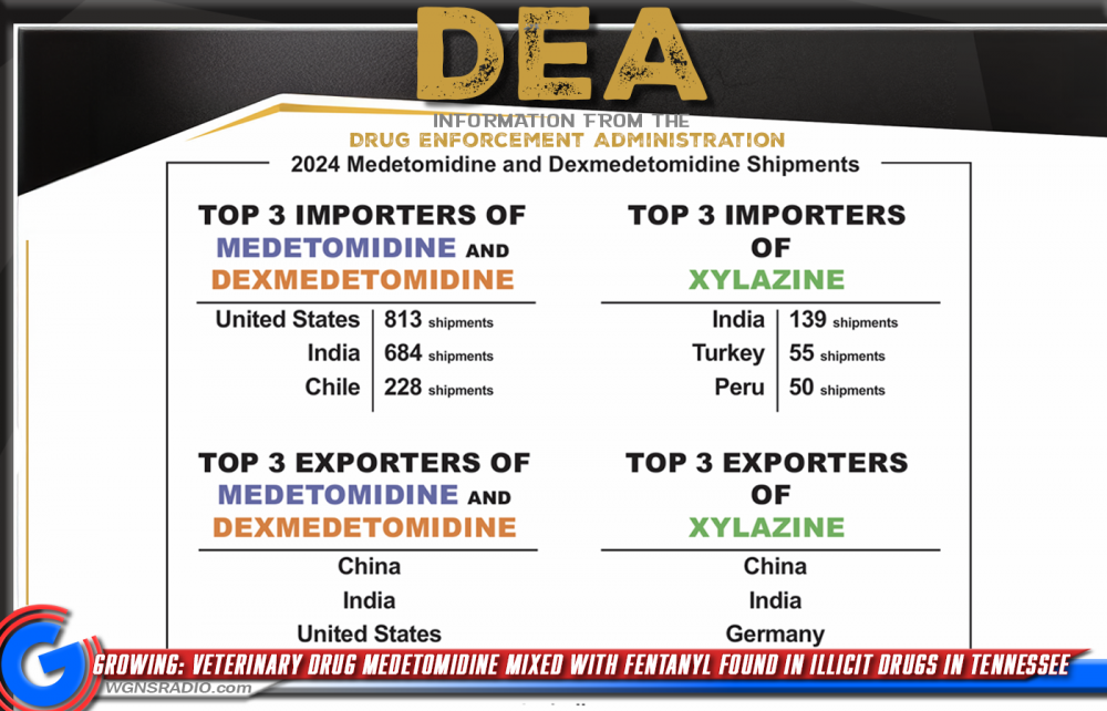 The Tennessee Bureau of Investigation (TBI), the Tennessee Department of Mental Health and Substance Abuse Services, and the Tennessee Department of Health report that Medetomidine, a veterinary anesthetic with powerful sedative properties, has recently appeared in crime labs. Officials warn the drug is far more potent than Xylazine and can cause prolonged sedation. Even more concerning, Medetomidine is often found mixed with fentanyl, dramatically increasing the risk of overdose and death.