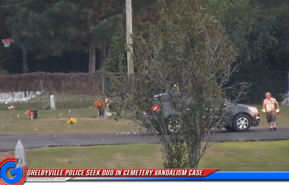 Investigators released a photo showing the duo alongside a mid-2010s Chevrolet Traverse, which was reportedly seen parked near the cemetery around the time of the vandalism. Detectives say the pair were caught on camera visiting the area near the intersection of Highway 41 and Lane Parkway in Shelbyville.