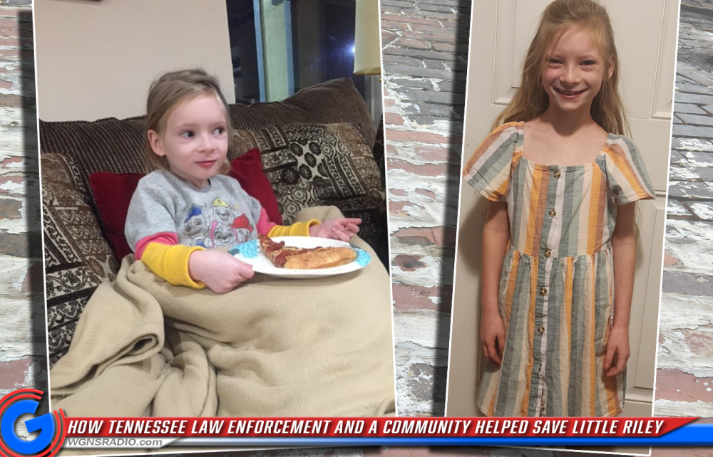 Photos (Above Article - Left): Riley, 3, eats pizza after being rescued by Rutherford County Sheriff’s deputies and Murfreesboro Police and K9. (Above Article - Right) Riley poses as she enters second grade.