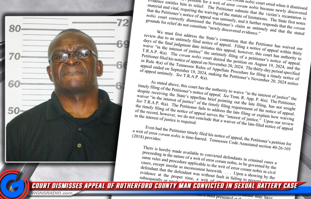 With the ruling, Kromah’s conviction for sexual battery by an authority figure remains in place, and the appellate court’s decision formally dismisses his appeal. The denial for the appeal to move forward was filed by the Clerk of the Appellate Courts this past week on October 16, 2025 in Nashville.
