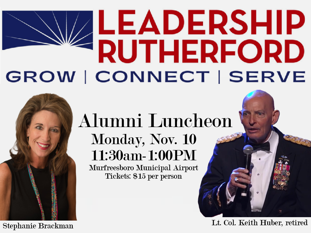 That spirit of connection will be front and center at the upcoming 2025 Leadership Rutherford Alumni Luncheon on Monday, November 10. Held at the Murfreesboro Municipal Airport, the event features retired Lieutenant General Keith Huber as keynote speaker. His message—“Leadership Through Service”—will honor veterans and inspire attendees to lead with purpose.