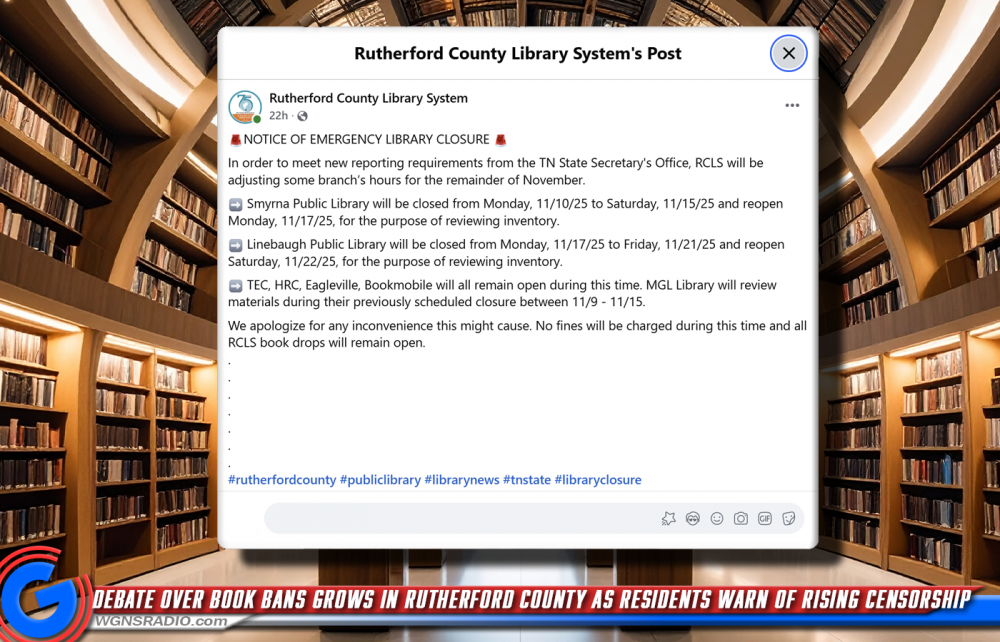 Letter from the Tennessee Secretary of State: Following the July and August meetings, the Rutherford County Library System announced an immediate closure of several branches, stating it was necessary “In order to meet new reporting requirements from the TN State Secretary's Office,” according to a social media post. You can READ the letter sent to the library from the Tennessee Secretary of State HERE.