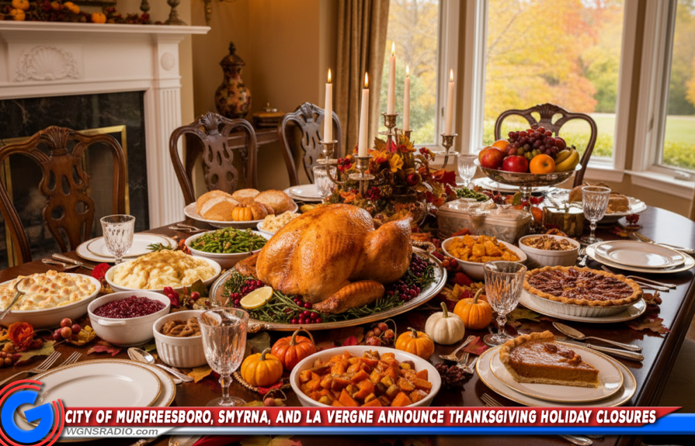 MURFREESBORO, Tenn. – In observance of the Thanksgiving holiday, City Hall and most Murfreesboro city offices will be closed Thursday, Nov. 27, and Friday, Nov. 28, 2025. Below are details on closures and adjusted schedules for city services and facilities. For Smyrna, La Vergne and Rutherford County, Scroll Down.