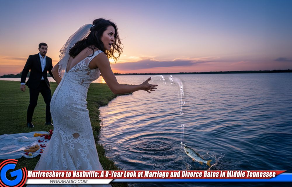 MURFREESBORO, Tenn. — A sweeping nine-year analysis of marriage and divorce data reveals dramatic contrasts across Middle Tennessee, with several of the more rural counties posting some of the highest divorce-to-marriage ratios in the state — while urban Davidson County remains the lowest. WGNS gathered the numbers from data the Tennessee Department of Health with reports from county clerk offices and the Tennessee Office of Vital Records.