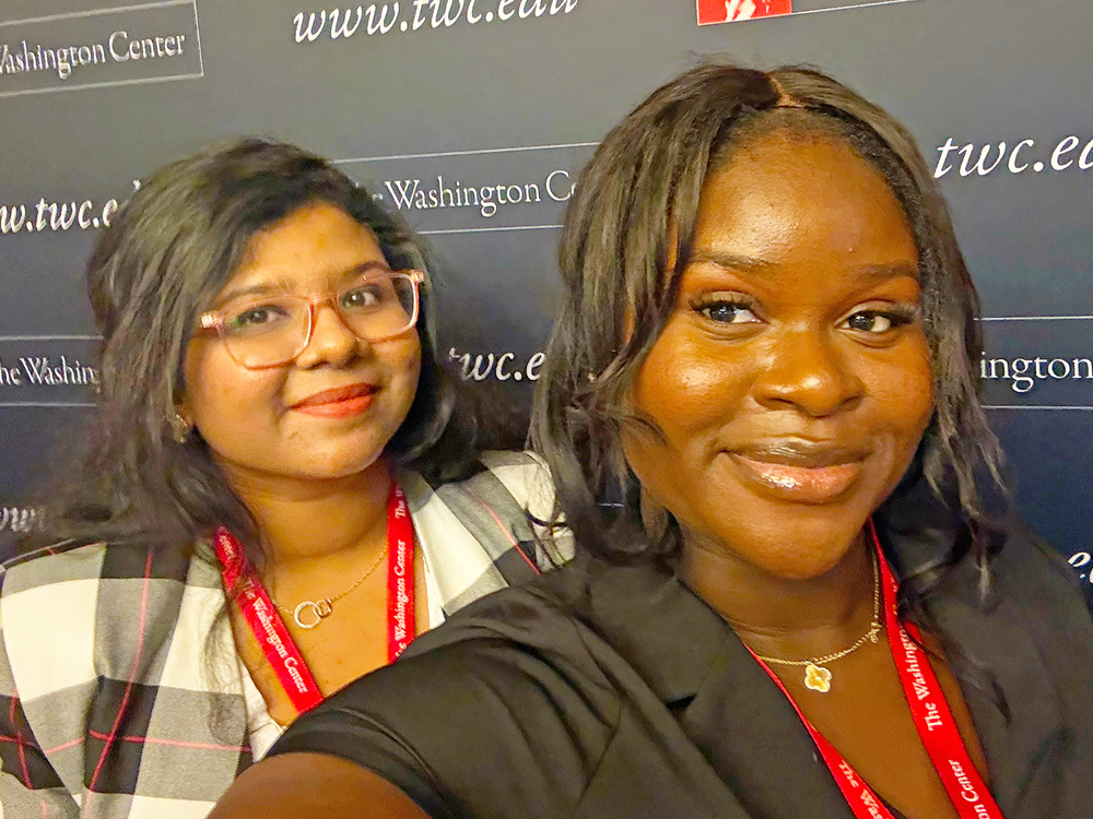 MURFREESBORO, TN - Two Middle Tennessee State University graduate students recently stepped into the nation’s nonprofit hub to sharpen their skills in leadership and advocacy. Kehinde Olomu of Nigeria and Sumaya Tasnim of Bangladesh, both enrolled in MTSU’s Master of Arts in International Affairs program, attended The Washington Center’s Nonprofit Leadership and Advocacy Seminar in Washington, D.C., Nov. 11–16, 2025.
