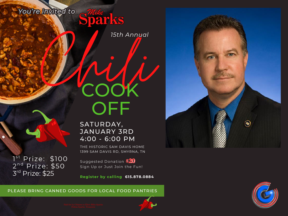 SMYRNA, TN (WGNS) - WGNS listeners know State Rep. Mike Sparks as a regular voice on the station, especially during his Sunday evening community engagement show at 5:00 PM. This week, he’s helping highlight one of Smyrna’s most beloved winter traditions: the 15th Annual Chili Cook-Off, happening Saturday, January 3rd at the historic Sam Davis Home.
