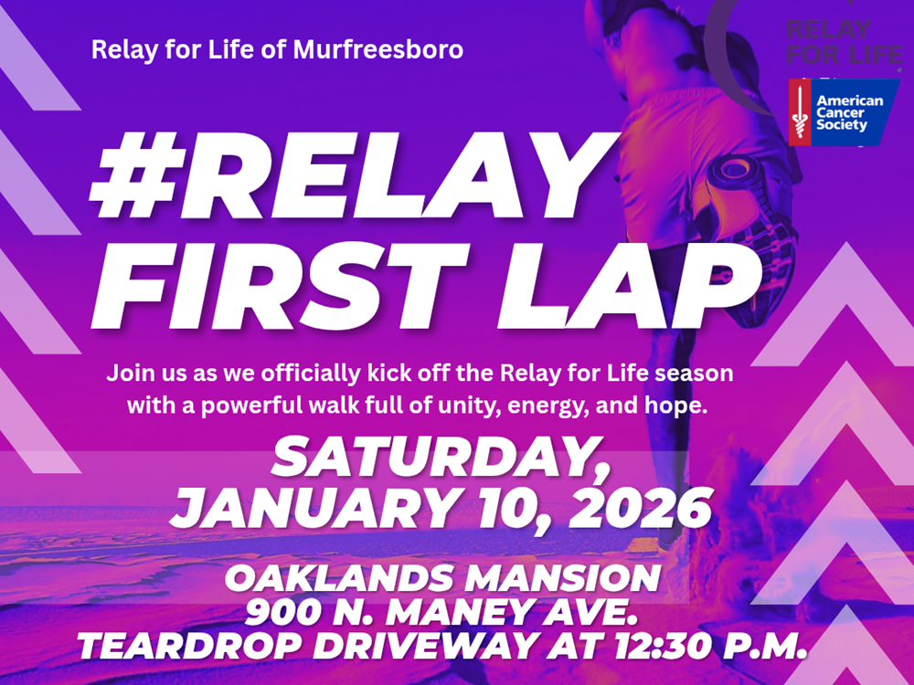 Organizers are encouraging all Relay teams, team captains, survivors, caregivers, and anyone curious about getting involved to attend. Relay First Lap serves as the early spark leading into the main Relay For Life of Murfreesboro event, scheduled for June 12, 2026, from 5 to 9 p.m., also at Oaklands Mansion. Funds raised support cancer research, patient services, advocacy, and education programs that directly impact families across Rutherford County.