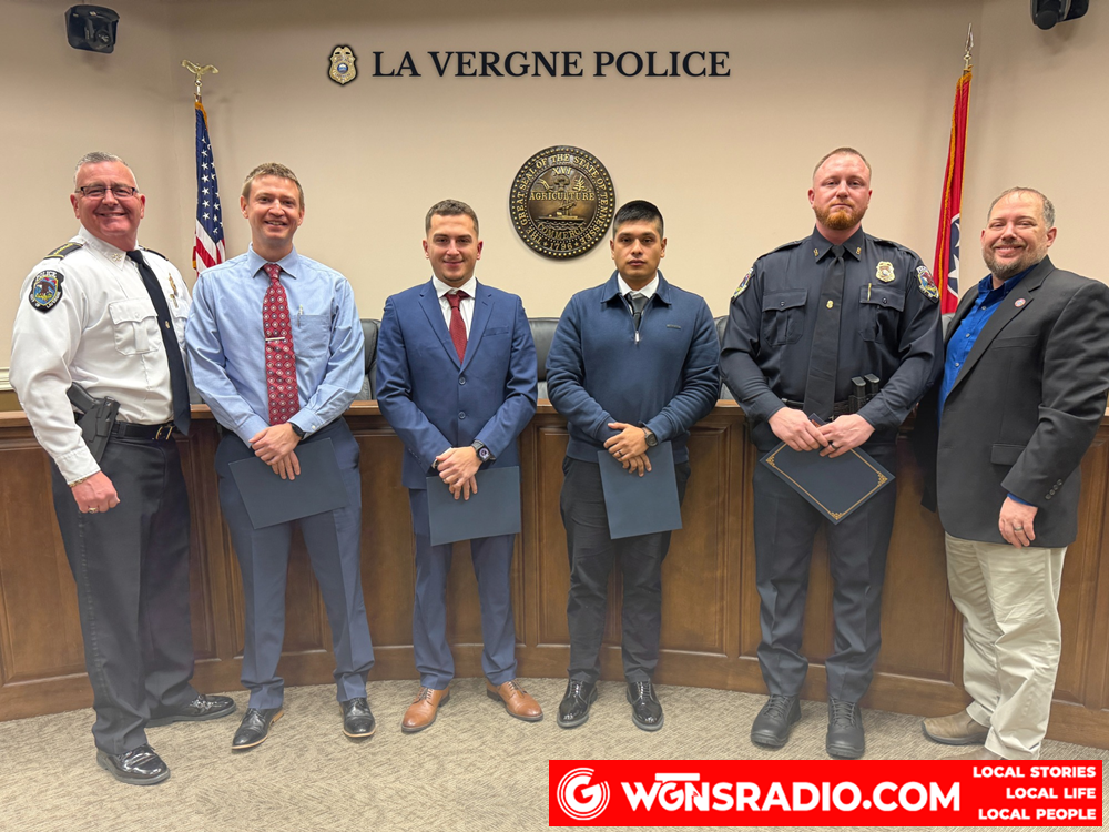La VERGNE, TN (WGNS News) - Four new protectors were sworn-in as officers with the La Vergne Police Department by Chief Christopher Moews. It was a proud moment for the department, and the Chief made it clear just how meaningful their commitment is. He praised the officers for choosing a path built on service, sacrifice, and dedication. Chief Moews reminded everyone that law enforcement is not an easy profession, but one that demands heart, resilience, and a steady sense of purpose. The chief also emphasized something he often says with pride: La Vergne is home to some of the best officers in the nation, and these four newcomers are stepping into that tradition with the right mindset and work ethic.