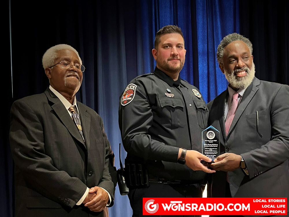 MURFREESBORO, TN (WGNS News) - Officer Dustin Nicholson was recognized Saturday (1/17/2026) with the Jerry Anderson Hero Award, presented by the NAACP Murfreesboro Branch during the annual MLK Breakfast at Middle Tennessee State University. The honor follows Nicholson’s decisive and compassionate response on Dec. 23, 2025, when he pulled a woman to safety from the I‑24 overpass at Old Fort Parkway after she had climbed over the guardrail.