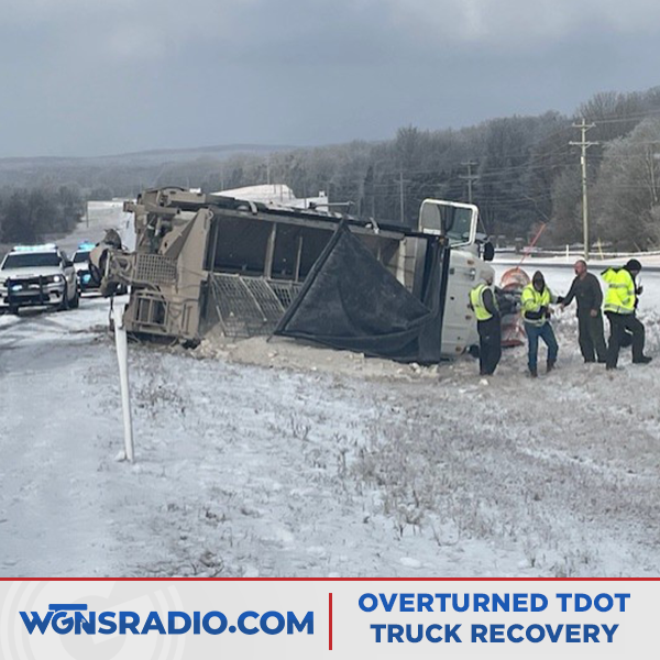 MURFREESBORO, Tenn. (WGNS) - A Tennessee Department of Transportation (TDOT) employee narrowly escaped injury Monday morning after their vehicle overturned on U.S. Highway 70 South or John Bragg Highway. Scroll down for the full size image of the overturned TDOT truck on Monday (01/26/2026).