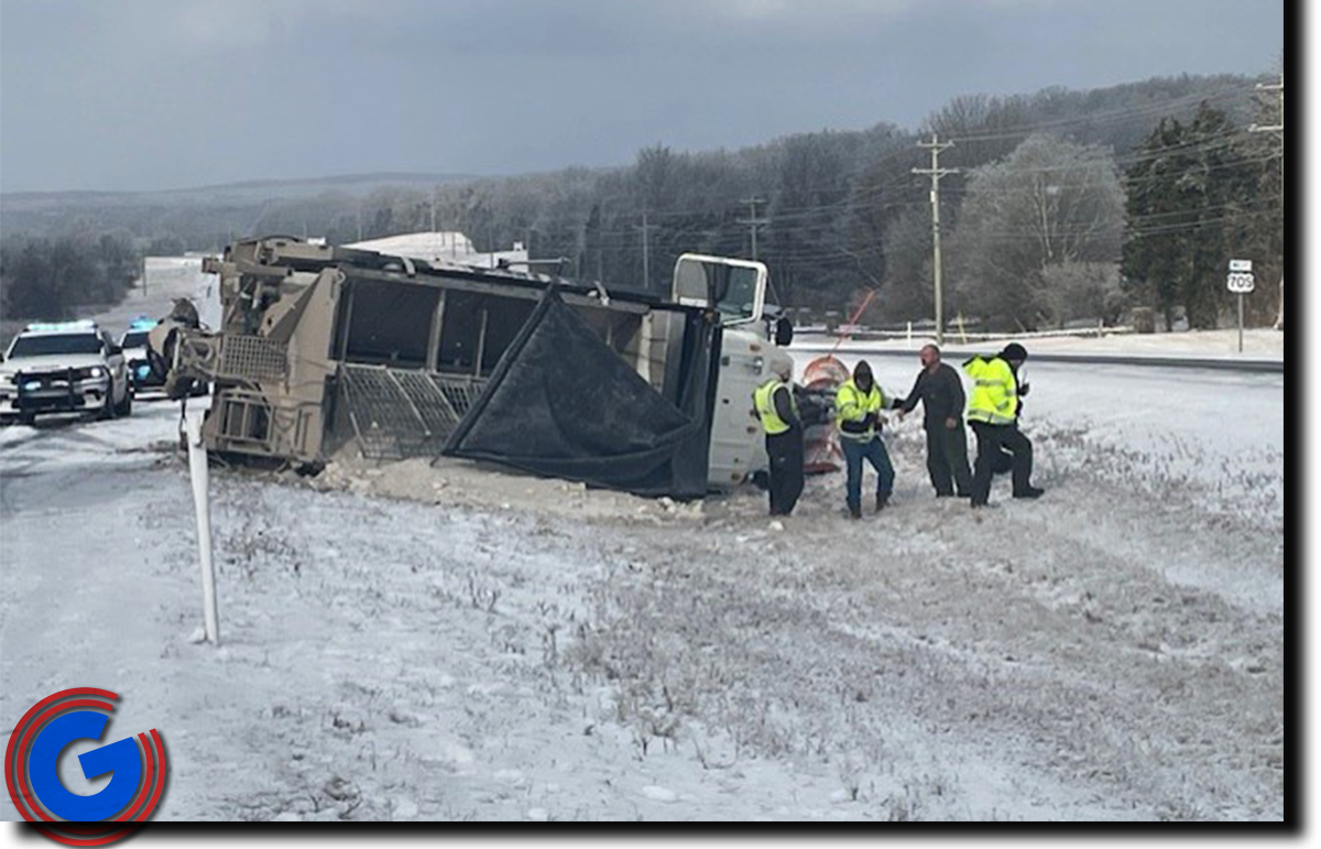 The accident occurred as winter weather conditions continue to impact road safety across the region. Despite the truck flipping onto its side and coming to a rest in the highway median, the driver was able to climb out of the wreckage unassisted.