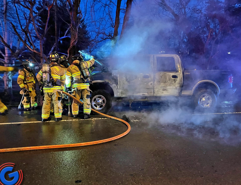 MURFREESBORO, TN (WGNS) - A dramatic scene unfolded on NW Broad Street just after sunset Thursday (1/29/2026) night when a Ford F-150 super-cab pickup truck became fully engulfed in flames during the height of the evening commute. Drivers heading home from work found themselves passing a wall of fire near the Thompson Lane intersection, before first responders could reach the area. This is the area that's in front of the Stones River Country Club.