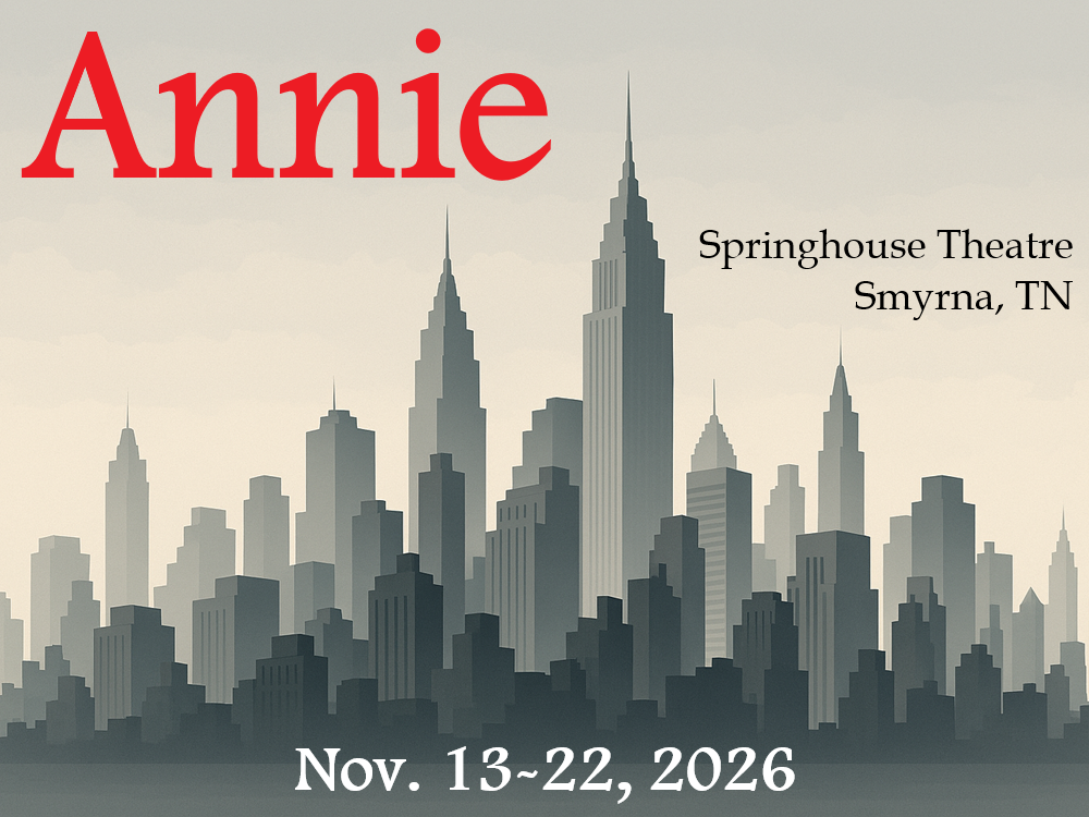 Fri-Sat 7:30PM / Sun 3:30PM (Nov. 13 - 22, 2026) The Springhouse Theatre (14119 Old Nashville Highway, Smyrna TN) presents “Annie”. Annie follows an optimistic orphan who refuses to give up hope as she dreams of finding her family during the Great Depression. Her life changes when she’s invited to spend Christmas with billionaire Oliver Warbucks, whose world softens as he grows to care for her. The story blends resilience and a bright belief that even the bleakest days can turn around. Reserve tickets on their website: http://springhousetheatre.com. The lobby opens 1 hour prior to showtime. For more information, phone (615) 852-8499.