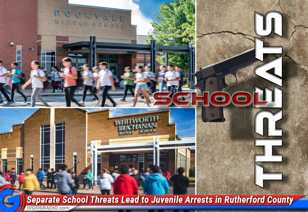 RUTHERFORD COUNTY, TN (WGNS) - Rutherford County Sheriff's Office authorities have charged two middle school students following separate threats reported Thursday at two campuses in Rutherford County. According to sheriff’s officials, a student at Rockvale Middle School allegedly threatened to bring a gun to school. Detective Sgt. Thomas Burnett of the Criminal Investigations Division said the student was charged with communicating a threat concerning a school employee or student, a felony offense under Tennessee law. Detectives investigated the allegation before the charge was filed.