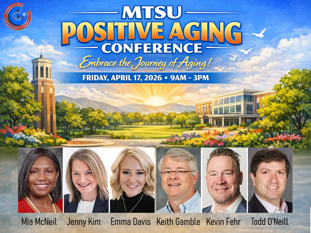 MURFREESBORO, TN (WGNS) - Registration is officially open for Middle Tennessee State University’s 2026 Positive Aging Conference, set for 9 a.m. to 3 p.m. on Friday, April 17, 2026 at the Miller Education Center on East Bell Street. The daylong event is hosted by the MTSU Positive Aging Consortium. It brings together national experts, local leaders, and community members who want practical, science-backed strategies for living well as they age. Admission is $35 and includes meals, parking, and materials. Registration is online only and closes next week on Friday, April 10.
