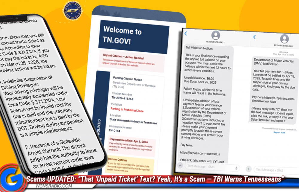 MURFREESBORO, Tenn. — In what could only be described as the digital equivalent of a parking ticket tucked under your windshield—except far less official and far more annoying—the Tennessee Bureau of Investigation is warning residents about a fresh wave of scam messages trying to separate Tennesseans from their money.
