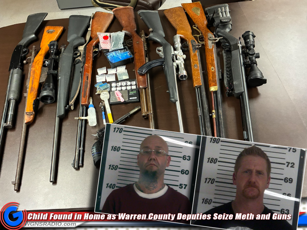 Two individuals, identified as Michael Christopher Reagan and Joseph William Muncey, both of Warren County, were arrested at the scene. At the time of the search, a four-year-old child was also present inside the home. Officials said the child was safely released to a family member without incident.