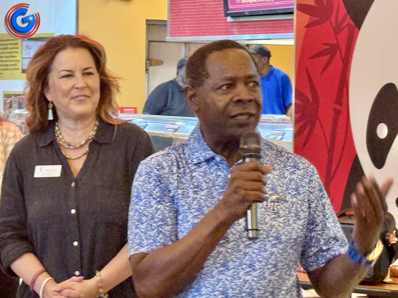 MTSU President Sidney McPhee welcomes the packed SUB as the Chamber's Kelli Beam looks on.