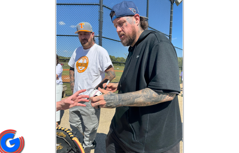 Country artist Jelly Roll at Home Run for Hope event regarding ADA Ball Field in Edwin Warner Park in Nashville.