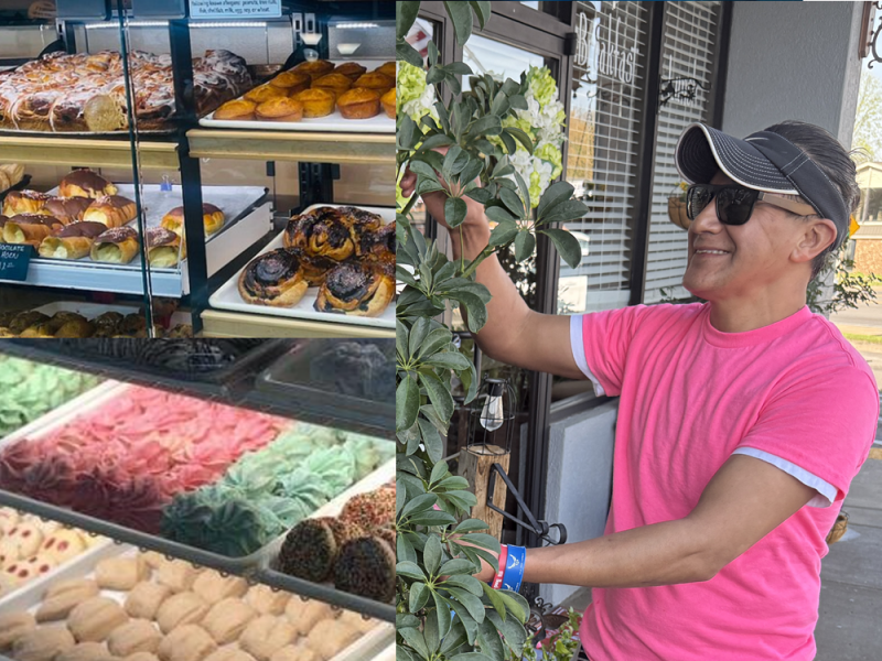 Danny Hernandez takes care of his flowers as well as delicious baked goodies.