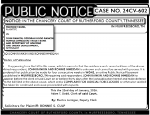 IN THE CHANCERY COURT OF RUTHERFORD COUNTY, TENNESSEE AT MURFREESBORO